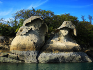 목포 가볼만한곳 베스트 10 세 번째! 천연기념물 제500호로 지정이 된 갓바위는 두 사람이 나란히 삿갓을 쓴 채 서 있는 모습의 바위로 대략 8천만년전 화산재가 굳어진 용결응회암이다. 예전에는 배를 타고 나가야만 볼 수가 있었던 갓바위를 해상에서 직접 조망해볼 수 있는 보행교를 바다위에 설치해서 더욱 가까이에서 볼 수 있다.