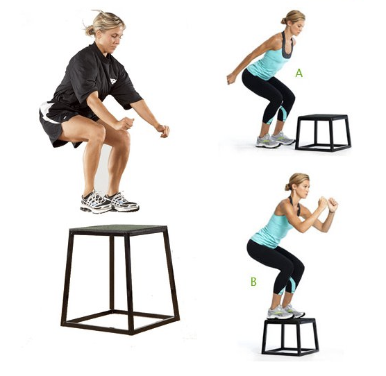 고강도 운동 종류 네 번째! 박스 위로 점프하여 뛰어오르는 동작으로 하체 후면 발달에 도움을 준다. 숙련이 된 사람들은 박스 높이를 높여서 점프를 하고 비숙련자들은 높이를 낮춰서 동작을 수행하면 된다. 크로스핏에서 많이 사용되는 박스는 높이가 30인치, 24인치, 20인치로 높이를 무리하게 높이면 부상 위험이 있으니 조심해야 한다.
