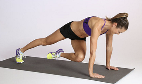고강도 운동 종류 다섯 번째! 양손으로 바닥을 짚고 다리를 뒤로 뻗은 뒤 플랭크 자세를 취해준다. 그다음 오른쪽 무릎을 가슴 부위로 당기면서 엉덩이가 위로 올라가지 않도록 낮은 자세를 유지하며 복근에 긴장감을 준다. 이러한 동작을 모두 끝낸 후 1분간 조깅이나 제자리걸음을 하면 1세트 완성! 같은 동작을 2번 더 반복하여 총 3세트를 실시하면 된다.