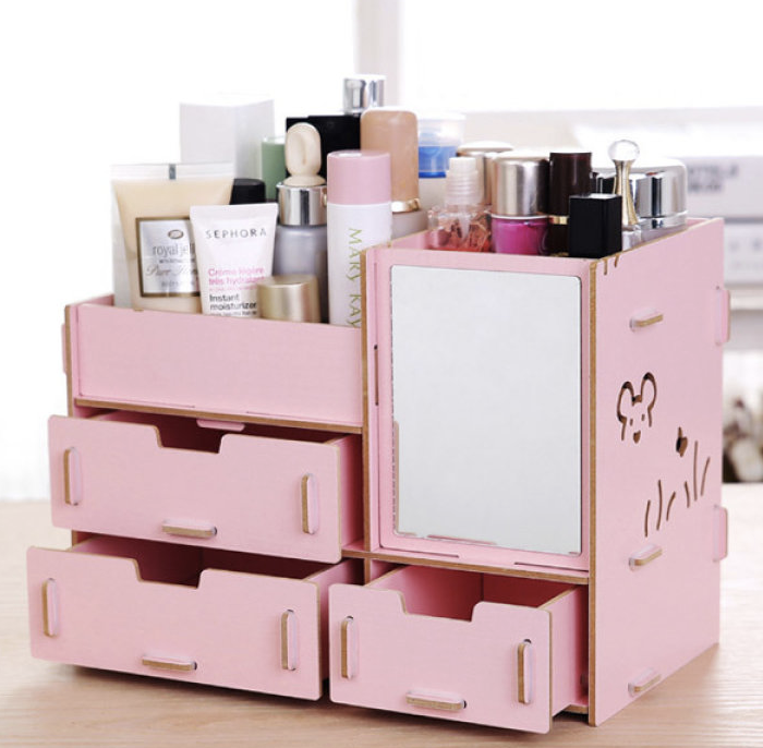 칸이 많고 투명한 컬러로 내용물을 쉽게 확인할 수 있어 자칫 복잡해지기 쉬운 화장대 위도 깔끔하게 정리해준다. 여성스러운 디테일이 입체적으로 들어간 다양한 컬러의 화장품 보관함도 마련되어 있다.