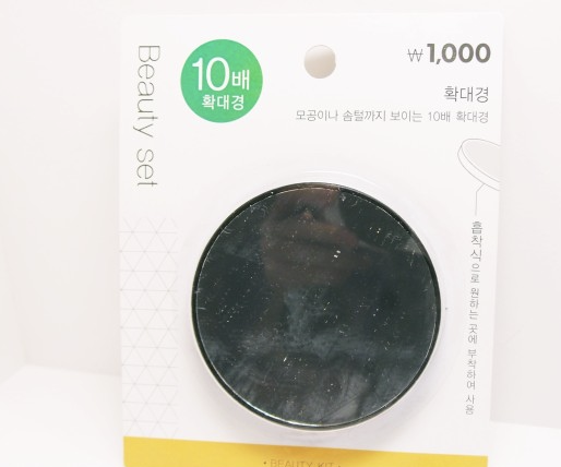다이소 꼭 사야할 가성비 제품 추천템 다섯 번째! 다이소의 일반 거울도 저렴한 가격대와 다양한 디자인 덕분에 가성비 좋은 제품으로 인정받고 있지만, 화장할 때 유용한 10배 확대경은 특히나 인기 있은 아이템이다.