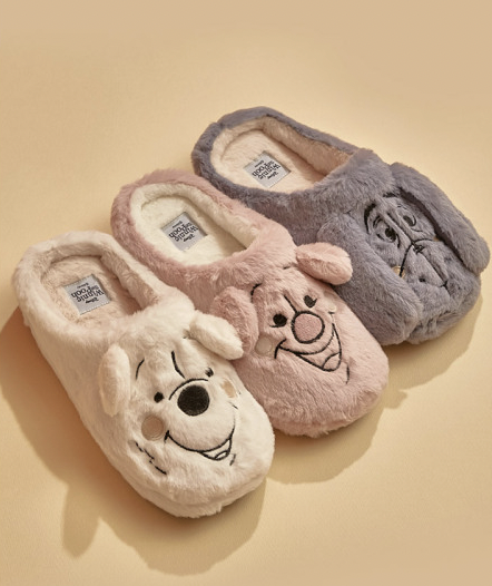 층간소음 해결 예쁜 거실화 슬리퍼 추천 두 번째! 슈펜이 곰돌이 푸우 캐릭터 IP와 콜라보를 통해 만들어낸 제품이 바로 이 룸 슈즈다. 작품에 등장하는 네 명의 주요 캐릭터가 새겨진 룸 슈즈로, IP에 기반한 세련된 컬러링이 매력적이다. 보다 푹신한 착용감을 위해 제품의 밑창에는 더블업 쿠셔닝이, 바닥에는 논슬립 TPR이 적용돼 있다.