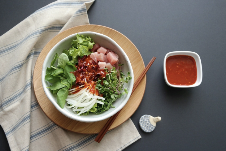 만능 불닭소스 활용 요리 레시피 여섯 번째! TV에서 소개된 연예인의 레시피로, 회와 불닭 소스를 함께 먹는 발상은 독특하지만 은근히 잘 어울리는 조합이기도 하다. 밥에 신선한 채소와 회를 듬뿍 넣고 참기름과 불닭 소스를 뿌려주면 완성이다. 기존의 회덮밥과는 완전히 다른 맛으로 참기름이 매운맛을 잡아주며 회의 식감에 매운맛이 강하게 느껴진다. 평소 느끼한 것을 싫어하고 매운 음식을 선호한다면 한 번쯤 도전해봐도 좋을 듯하다. 불닭 소스를 처음 접하는 사람보다는 마니아들에게 추천하는 레시피다.