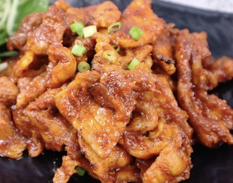 만능 불닭소스 활용 요리 레시피 첫 번째! 고추장 양념의 매콤 달콤한 제육볶음은 남녀노소 누구나 좋아하는 반찬이자 한 그릇 음식으로, 고기와 불닭 소스 또한 훌륭한 조합을 자랑한다. 많이 먹으면 질릴 수 있는 고기에 매콤한 소스를 살짝 더해 만든 불닭 제육볶음은 집에서 만들었을 때 살짝 부족한 감칠맛을 불닭 소스로 더해줄 수 있다. 매운 음식을 잘 먹는다면 불닭 소스만으로 만들어도 되지만 소스 자체가 매우 맵기 때문에 고추장에 살짝 첨가하는 것이 좋으며, 채소를 곁들이는 것도 추천한다.