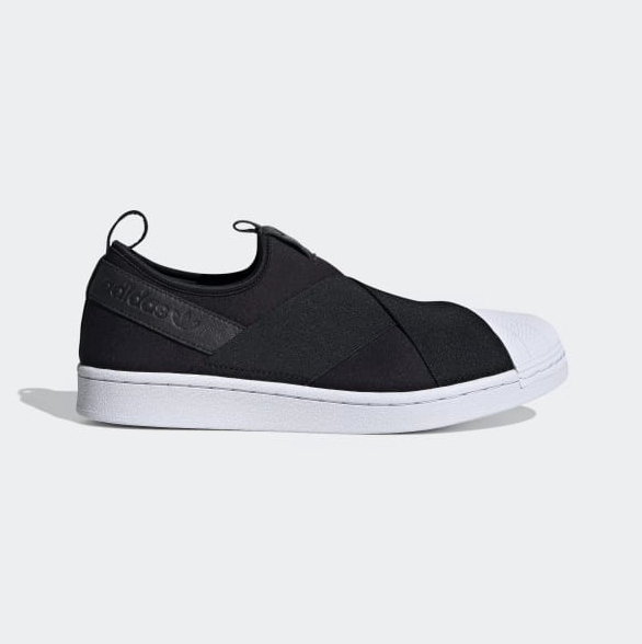 슬립온 운동화 종류 비교 추천 여덟 번째! 아디다스 슈퍼스타 디자인의 정체성은 그대로 유지하는 한편, 끈을 없애 신고 벗기 편하게끔 디자인을 변주하고 스포티한 악센트를 부여해 선보인 아디다스 슈퍼스타 슬립온은 아이부터 어른까지 누구나 편안하게 신을 수 있는 데일리 슈즈로 사랑받고 있다. 발등을 감싸는 X자 형태의 엘라스틱 밴드는 디자인적인 매력은 물론 착용감을 보다 안정적으로 잡아주는 기능적인 역할도 함께 수행한다.