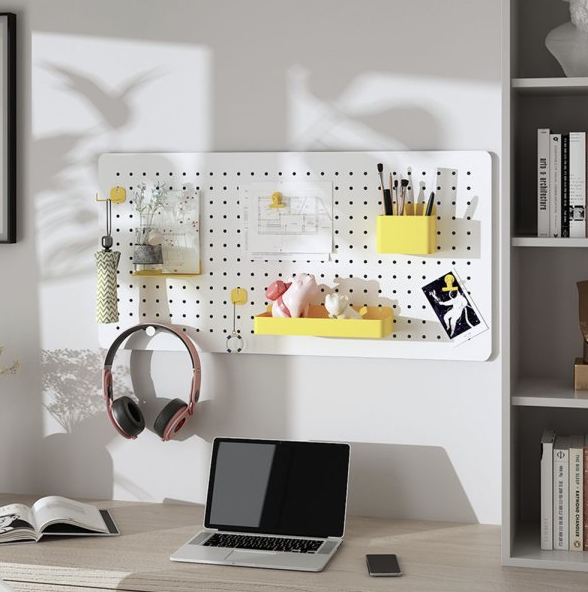 홈오피스 재택근무 장비 아이템 종류 추천 열 번째! 사무실에서는 파티션이 있어 여러 가지 메모를 붙여둘 수 있지만 집에서는 불가능하다 보니 공간 활용에 애매함을 느낄 때가 있다. 이럴 때 타공판을 하나 구입해두면 메모 보드로도 쓸 수 있고, 후크을 이용해 다양한 액세서리들도 걸어둘 수 있어 실용적이다. 이케아의 타공판 액세서리들은 저렴한 가격은 물론 선반, 서류홀더, 수납가방, 고무밴드 등 타공판 활용 예시의 끝판왕을 보여준다.