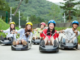 통영 가볼만한곳 베스트 10 두 번째! 세계에서 가장 스릴이 넘치는 어드벤쳐활동 중에 하나인 루지를 통영에서도 즐겨볼 수 있다. 스카이라인 루지는 탑승자가 스스로 제어를 하며, 총 약 1.5km의 트랙을 내려올 수 있게끔 고안된 바퀴 달린 중력놀이기구이다.