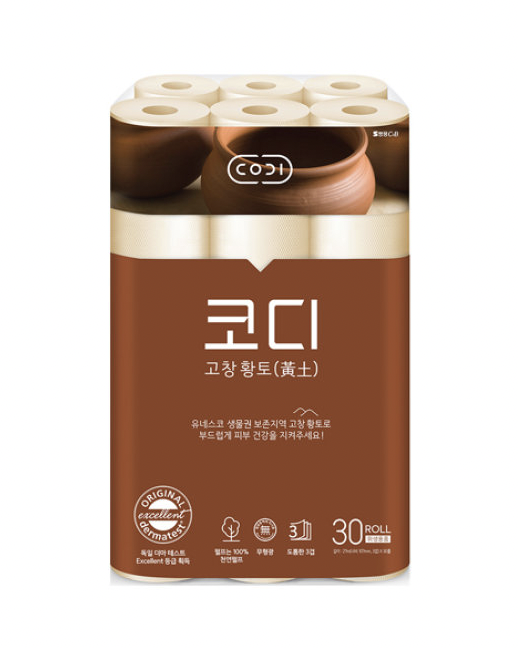 친환경 화장지 티슈 종류 비교 추천 네 번째! 유네스코 생물권 보존 지역인 고창의 황토를 함유해 부드럽게 피부 건강을 지켜주는 화장지다. 세계적인 권위를 자랑하는 피부 과학 연구소인 독일 더마 테스트에서 국제 기준에 따라 24시간, 48시간, 72시간에 걸쳐 피부 패치 테스트를 한 결과 피부 저자극 결과를 받아 최고 등급인 엑설런트 등급을 획득했으며, 기능성 물질이 첨가된 티슈의 제조 방법으로 특허까지 획득한 프리미엄 제품이다.