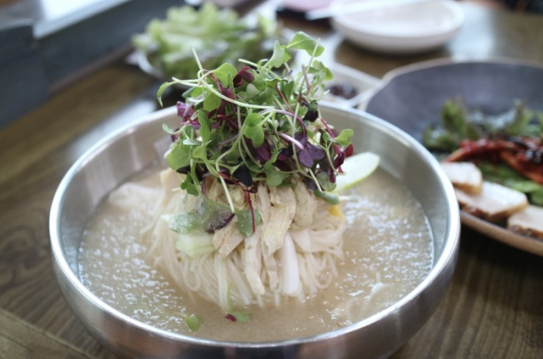 전국 초계국수 맛집 추천 베스트 여덟 번째! 제주에 위치한 초계국수 전문점으로 아담한 가게는 깔끔하며 편안하게 식사를 할 수 있는 분위기다. 해물을 넣어 만든 육수에 찹쌀보리를 첨가한 면을 사용하는 이곳의 초계국수는 기본 초계국수와 초계냉면, 비빔 초계 냉면과 초계 온면까지 다양하다. 쫄깃한 식감의 면이 맛있는 초계 냉면은 국물이 맑고 개운하며 잘게 찢은 닭고기가 푸짐하게 올라가 있다. 초계 온면은 담백한 타입과 얼큰한 국물 두 가지가 있으며 닭고기가 들어가는 초계 콩나물국밥도 있으니 다양하게 맛보자. 주소는 제주 서귀포시 안덕면 대평 감산로 38이다.