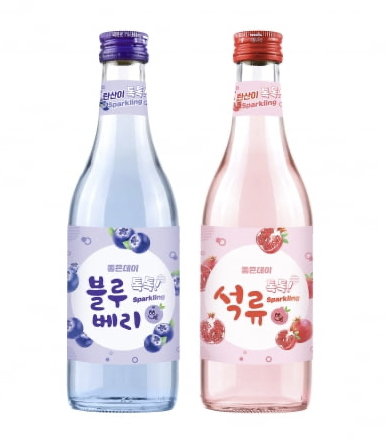 특이하고 독특한 이색 소주 종류 추천 네 번째! 좋은데이 민트 초코 이전에도 무학은 과일 리큐르 시장을 겨냥한 제품을 내놓은 바 있다. 바로 ‘좋은 데이 블루베리’와 ‘좋은데이 석류’인데, 2015년 출시된 이 제품은 새로운 젊은 층을 겨냥해 패키지를 전면 리뉴얼했다. 상큼한 과즙을 투명한 용기에 담았고, 청량한 탄산과 컬러를 입혔다. 용량은 350㎖며, 알코올 도수는 7%로 소주치고는 상당히 낮은 편이다. 제품에는 탄산의 압력을 견딜 수 있는 특수 병마개가 적용됐다.