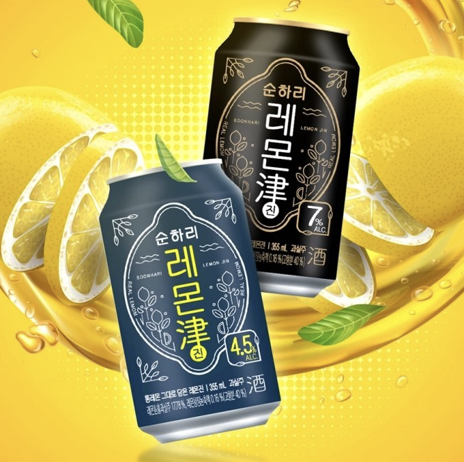 특이하고 독특한 이색 소주 종류 추천 열 번째! 롯데칠성음료의 과일 리큐르 시장을 노린 제품은 ‘순하리 레몬진’이다. 순하리 레몬진은 캘리포니아산 통 레몬에서 레몬즙을 침출해, 더욱 상큼하고 새콤한 레몬 본연의 맛을 살린 과실주다. 알코올 도수 4.5도의 ‘순하리 레몬진 레귤러’와 7도의 ‘순하리 레몬진 스트롱’의 2종으로 구성됐다. 회사 측은 가볍게 술을 즐기고자 하는 소비자들을 겨냥해 레귤러를, 가성비 좋은 높은 도수의 술을 선호하는 소비자를 위해 스트롱 제품을 출시한 것이라 설명하고 있다.