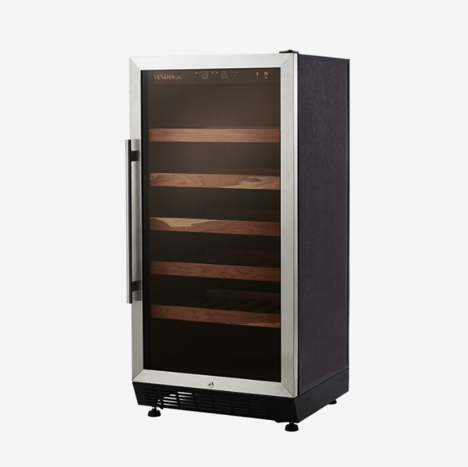 와인 냉장고 와인셀러 종류 비교 추천 네 번째! 블랙 색상의 빈디스 와인 냉장고는 12병을 보관할 수 있는 ‘BW-35D1’, 24병을 수납할 수 있는 ‘BW-70D1’의 두 가지 타입이 각각 20만 원 중반대와 30만 원 후반대의 가격으로 판매되고 있다. 터치 컨트롤 패널을 적용해 직관적으로 제품을 조작할 수 있으며, 온도는 11도에서 18도 사이로 자유롭게 설정할 수 있다. 전면에는 UV 차단 글라스 도어가, 내부에는 은은한 분위기의 LED 고내등이 적용됐다.