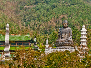 강진 가볼만한곳 베스트 10 열 번째! 세계 불교 미륵대종 총본산인 남미륵사는 1980년 법흥 스님이 창건하였다. 이후 법흥스님이 38년에 걸쳐서 새로운 건물을 중창하고, 꽃과 나무로 사찰의 안팎을 가꾸어 현재의 웅장하고도 수려한 경관을 갖게 되었다. 현재 남미륵사에는 동양의 최대 규모의 황동 아미타불 불상이 있고, 일주문에서부터 경내에 이르는 길엔 500 나한상이 배치되어 있다.