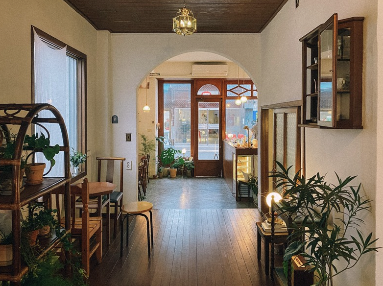김해 여행 봉리단길 복고 감성 카페 추천 두 번째! 가게 내부가 보이는 큰 유리 창이 돋보이는 ‘어반 이너프’의 독특한 인테리어는 봉리단길의을 방문한 사람들의 발걸음을 멈추게 한다. 아기자기한 인테리어와 감성적인 식물들이 돋보이는 내부로 들어가면 직접 만든 신선한 케이크가 예쁘게 진열되어 있다. 플레인 스콘, 얼그레이 파운드케이크, 치즈케이크, 당근 케이크 등 다양하고 색다른 케이크를 맛볼 수 있어 특별한 이곳. 2층에는 비밀스러운 공간이 존재하는 데 계단을 올라가면 자그마한 다락방이 등장한다. 러블리한 쿠션과 라탄 가방에 자연스럽게 담긴 레이스와 꽃, 책들로 피크닉 감성을 느낄 수 있다. 주소는 경남 김해시 봉황대길 54이다.