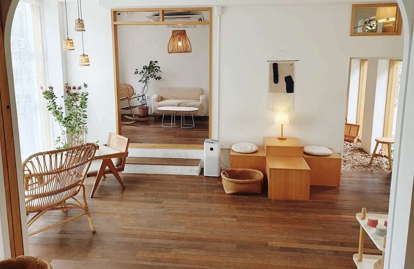 김해 여행 봉리단길 복고 감성 카페 추천 네 번째! 화이트 벽돌에 큰 차, 큼지막한 우드 문과 시선을 사로잡는 나무 창살로 따스한 분위기가 느껴지는 이곳. 자그마한 나무 팻말에 귀엽게 적혀진 ‘고동 집'이라는 간판에 아기자기함이 느껴지고 창살 사이로 스며드는 오후의 햇살이 아름답다. 내부로 들어가면 우드로 디자인된 인테리어가 보이는데 특유의 빈티지한 분위기와 넓은 창으로 보이는 싱그러운 나무들로 날씨 좋은 날, 혼자 여유를 즐기기에 적당하다. 흑임자 라테와 솔방울 에이드가 대표 메뉴로 이곳에서 판매하고 있는 촉촉하고 보드라운 스콘과 궁합이 좋다. 내부 곳곳 감성 담긴 소품들로 꾸며져 있어 주인의 센스를 느낄 수 있다. 주소는 경남 김해시 가락로23번길 40이다.