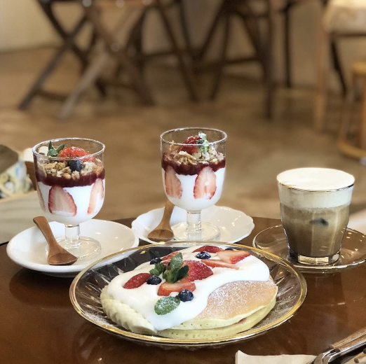 김해 여행 봉리단길 복고 감성 카페 추천 첫 번째! 커다란 창과 우드 문, 그리고 하얀 커튼까지. 내부로 들어가기도 전에 감성을 자극하는 ‘플로우무드’는 팬케이크가 맛있는 카페이다. 폭신폭신한 팬케이크가 대표 메뉴인 이곳은 새빨간 생딸기가 올라간 딸기 팬케이크와 딸기를 이용한 라테는 딸기 덕후들의 마음을 설레게 하기 충분했다. 집에서도 쉽게 만들어 먹을 수 있는 팬케이크와 차원이 다른 촉촉한 팬케이크와 하얀 크림, 그 위에 딸기와 바나나 등이 어우러져 사진을 찍게 만드는 비주얼이다. 그 외 다른 매력이 있는 앙버터 팬케이크, 스크램블 팬케이크와 고소한 미숫페너, 모찌라테도 있으니 취향에 따라 즐겨보길 바란다. 주소는 경남 김해시 김해대로2315번길 25이다.