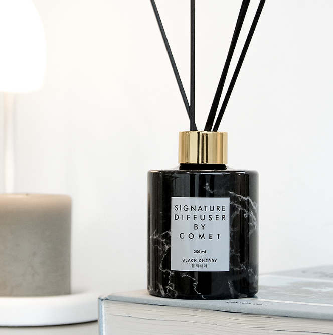 인테리어 소품 향기 좋은 디퓨저 종류 추천 첫 번째! 쿠팡의 자체 상표인 코멧의 시그니처 디퓨저는 스페인 프리미엄 원료를 사용해 전문 조향사가 만든 향으로 구성되어 있다. 일반 섬유 스틱이 아닌 밀도 높은 압착 섬유 스틱이 향을 가득 머금어 오랜 시간 향기가 지속된다. 달콤한 블랙체리, 풍부한 꽃향기의 타이니 가든, 은은하고 포근한 베이비 파우더, 달달하고 싱그러운 하와이안 선셋 향이 있으며, 대리석을 연상시키는 보틀 디자인 역시 감각적이라 인테리어 요소로도 좋다.