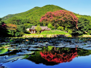 진도 가볼만한곳 베스트 10 두 번째! 첨찰산 첩첩산중에 아침저녁으로 피어오르는 안개가 구름의 숲을 이룬다는 운림산방에서는 산방 마루에 걸터 앉아 운림지를 내려다볼 수 있다. 슬며시 내리는 보슬비에 초가지붕이 젖으며 이윽고 뜨락에는 산빛 물이 든다. 때 마침 피어오르던 안개는 나갈 길이 없는지 운림지 가운데의 배롱나무 가지에 걸려 있으며 어느새 몽환의 세계에 갇힌다.