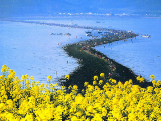 진도 가볼만한곳 베스트 10 여섯 번째! 세계적으로 널리 알려져 있는 진도 신비의 바닷길은 고군면의 회동리와 의신면 모도 사이 대략 2.8km의 바다가 조수간만의 차이로 인하여 바다밑이 40여m의 폭으로 물의 위로 드러나 바닷길이 열린다는 데 그 신비로움이 있다. 매년 이 현상을 보기 위하여 국내외 관광객 수십여만명이 몰려와서 바닷길이 완전히 드러나 있는 대략 1시간의 기적을 구경한다. 또한, 이날은 국내외의 관광객들을 맞아 진도 고유의 민속예술 등등을 선보이고 다양한 이벤트와 볼거리가 제공된다.