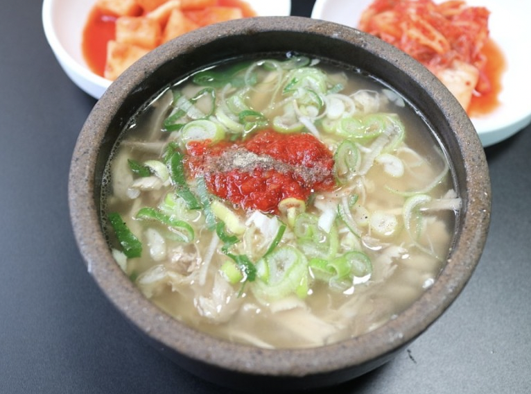 서울 닭곰탕 맛집 추천 베스트 첫 번째! 대청역 근처에 위치한 기사식당으로 메뉴는 닭곰탕과 닭칼국수, 닭계장 칼국수까지 모두 닭고기가 들어간 음식들이다. 파와 당면이 잔뜩 들어가 있는 닭곰탕은 특으로 주문하면 닭다리를 포함한 닭고기가 거의 반 마리 정도의 양으로 들어가 있어 매우 푸짐하다. 백숙이나 삼계탕보다는 좀 더 가볍게 삶은 닭을 먹고 싶을 때 건강하고 든든한 한 끼 식사로 적당한 메뉴다. 잡내 없이 깔끔하고 고소한 국물과 부드러운 닭고기가 만족스러우며 밑반찬으로는 김치와 마늘장아찌가 제공된다. 주소는 서울 강남구 개포로 646이다.