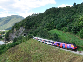 정선 가볼만한곳 베스트 10 세 번째! 정선아리랑열차는 코레일 주관으로 태백선과 정선선 그리고 중앙선을 왕복하는 관광 열차이다. 레일 크루즈 해랑으로 사용되었던 무궁화호를 개조 후 사용을 하며 새마을호 특실 등급으로 운행한다. 'A-train(에이 트레인)'이라는 별칭을 가지고 있다.