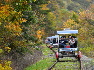 정선 가볼만한곳 베스트 10 아홉 번째! 정선 레일바이크는 강원도 정선의 구절리역에서 출발해서 아우라지역까지 대략 7.2km를 운행하는 철길 자전거이다. 정선은 도심에서 멀리 떨어져 있으나, 그만큼 도심에서는 즐겨볼 수 없는 빼어난 경관과 운치가 살아있는 곳이다. 그 풍경을 온전하게 느끼기에 레일바이크만큼 좋은 것은 없다.