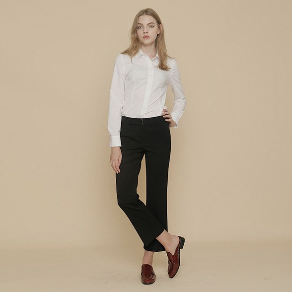 사회 초년생 여자 정장 오피스룩 브랜드 종류 추천 일곱 번째! 미니멀한 실루엣과 뉴트럴 컬러가 돋보이는 코튼 컬렉션을 선보인 프런트 로우(FRONTROW). ‘김태리 정장’ 이라는 키워드로 관심을 한 몸에 받았던 브랜드이다. 고급스러움의 끝판왕이라고 할 수 있는 프런트 로우는 고감도 소재, 입체 패턴 그리고 유니크한 디자인을 강조하여 타 브랜드와의 차별화를 두고 있다. 정장 아이템이 카테고리에 많은 부분을 차지하고 있으며, 통이 넓은 와이드 팬츠, 부츠컷 팬츠로 트렌디함이 특징적이다. 이태리의 글로벌 섬유 브랜드의 코튼 원단을 사용하여 사계절 내내 부담 없이 착용 가능하다.