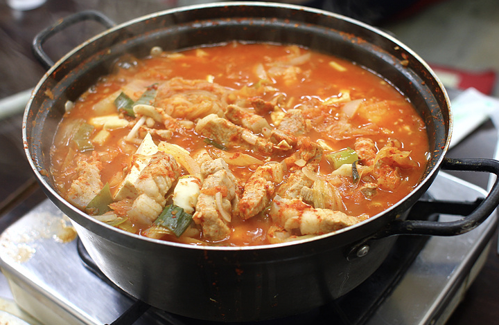 난리난 서울 김치찌개 맛집 추천 리스트 세 번째! 공덕역 바로 앞에 위치한 김치찌개 전문점으로 생오겹살과 생갈매기살, 왕갈비, 고추장삼겹살 등의 고기 메뉴도 있다. 이곳에서는 푹 익은 김치찌개를 스테인리스 그릇에 담아주는데 커다란 돼지고기와 김치가 숭덩숭덩 썰어져 있다. 다소 호불호가 갈리는 김치찌개이지만 잘 익어 부드러운 김치와 짜지 않아 부드럽게 넘어가는 찌개는 밥과 함께 먹기 적당하다. 두툼하고 촉촉한 계란말이와 독특한 양념의 제육볶음도 훌륭한 밥반찬이 되며 밑반찬들도 먹기 좋다. 주소는 서울 마포구 도화길 44-2이다.
