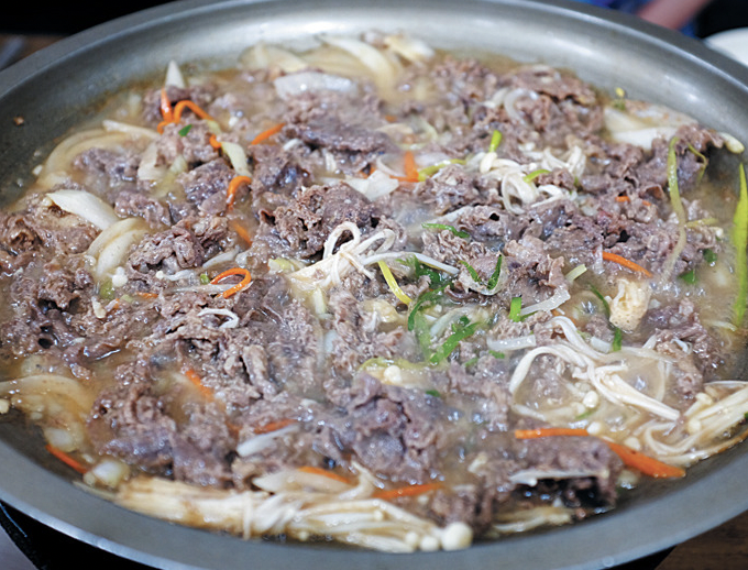 서울 불고기 맛집 추천 베스트 아홉 번째! 동대문에 자리 잡고 있는 불고기 전문점이다. 메뉴는 불고기, 갈비살, 소갈비찜, 생삼겹살, 육개장, 우족 갈비탕 등이 골고루 있다. 대표 메뉴인 불고기는 육수가 부어진 불고기 팬에 고기와 함께 당면과 파채를 듬뿍 올려 끓여 먹는 서울식 불고기다. 불고기는 순한 맛과 매운맛이 있으며 육수와 고기의 양은 제법 많다. 다소 조미료의 맛이 느껴진다는 평도 있는 집이지만 메뉴 선택의 폭이 넓으며 부담 없는 가격으로 불고기를 먹을 수 있는 곳이다. 주소는 서울 중구 을지로43길 38이다.