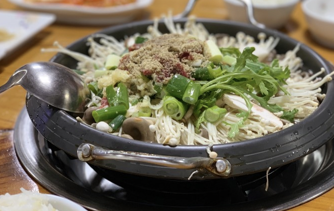 전국 국내 여행 버섯전골 맛집 추천 베스트 일곱 번째! 7월부터 10월까지는 버섯을 채취하기 위해 영업을 하지 않는다는 이곳에서는 야생 버섯을 맛볼 수 있다. 일반 버섯보다 맛과 향이 훨씬 진한 야생 버섯을 사용해 만든 버섯전골과 능이버섯이 들어간 오리백숙, 버섯돼지찌개 등의 메뉴가 있다. 오리백숙은 부추와 오리고기, 능이버섯이 들어갔으며 국물에 다른 양념을 많이 첨가하지 않아 아주 담백하다. 다양한 버섯을 골고루 먹을 수 있는 버섯전골 또한 깔끔하며 돼지고기가 들어간 버섯돼지찌개는 다른 곳에는 없는 독특한 메뉴다. 주소는 충북 청주시 청원구 오창읍 구룡택지로 17이다.