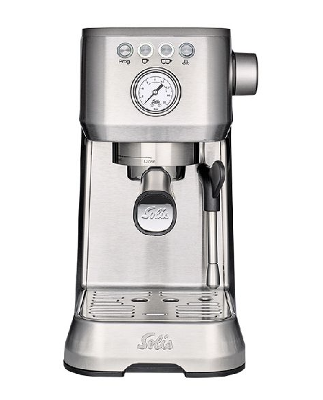 가정용 에스프레소 커피머신 브랜드 가격 종류 순위 비교 추천 첫 번째! 클래식한 디자인의 솔리스 커피머신은 디자인 경연 대회인 레드닷 디자인 어워드를 수상한 바 있는 제품이다. PID 온도 제어 시스템을 탑재해, 추출 온도를 일정하게 유지할 수 있다. 추출 압력은 15BAR며, 1샷, 2샷, 파드 커피 등 본인에게 맞는 커피를 추출할 수 있다. 스팀 기능을 내장하고 있어 우유 거품도 간편하게 만들 수 있다. 40만 원이 조금 넘는 판매가에 유통되고 있다.