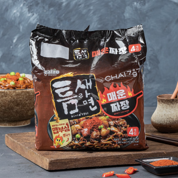 맛있는 짜장라면 종류 순위 추천 베스트 세 번째! 팔도의 ‘틈새라면’ 라인업은 극한의 매운맛을 체험할 수 있는 제품을 주로 선보이고 있다. 틈새라면의 짜장면은 베트남 하늘초를 적용해 매운맛을 살린 제품으로, 기존 제품 대비 3배 이상 양을 늘린 100g 대용량 액상수프가 특징이다. 모던 중식당 브랜드 차이797과의 협업을 통해, 유니짜장 스타일로 다진 돈육을 넣어 부드럽고 고소하면서도 매운맛의 짜장라면을 만들어냈다. 권장 소비자가는 개당 1,700원이다.