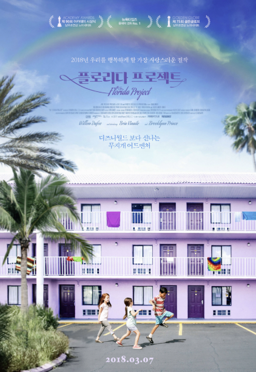 여름 배경 감성 영화 추천 베스트 세 번째! ‘플로리다 프로젝트’는 2017년 칸 영화제에서 최초로 상영됐으며, 제90회 아카데미 시상식 남우조연상 후보작이기도 한 작품이다. 조숙한 여섯 살 소녀 무니와 그녀의 천방지축 친구들에 대한 이야기를 그리고 있다. 월트디드니월드가 위치한 휴양지 올랜도 외곽을 배경으로 삼고 있으며, 연기파 배우인 윌럼 더포도 등장한다. 미국 빈민층의 현실을 어린이의 시선으로 보여주는 작품이다.