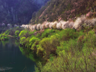 무주 가볼만한곳 베스트 10 다섯 번째! 부남면 도소마을에서 무주읍 서면마을까지 전체 19km, 대략 5시간이 소요되는 예향천리 금강변마실길 중에 제일 아름다운 무주읍 잠두마을 구간으로 약 1.2km 이어지는 벚꽃, 복사꽃 등과 어우러져 있는 옛길과 금강상류의 원형경관을 조망해볼 수 있도록 중간지점에 문화체육관광부 한국관광공사가 지정을 한 사진찍기 좋은 녹색 명소가 설치돼 있다.