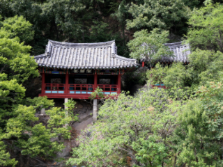 무주 가볼만한곳 베스트 10 열 번째! 관율정전망대는 무주읍 내도리 명산 정상부에 자리잡고 있는 정자로, 발아래 휘감아돌면서 흐르는 물을 바라보면서 인생무상을 느낀다 하여 관율정이라한다. 강변을 따라서 흐르는 구름 위의 산봉우리들이 잘 그려 놓은 한 폭의 그림과도 같이 아름다운 곳이다.