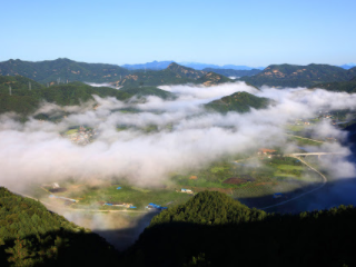 무주 가볼만한곳 베스트 10 두 번째! 향로산 제1전망대는 무주읍 읍내리의 뒷산에 위치해 있는 해발 약 420m의 향로산 정상의 정각으로 이곳에서 전망해보는 육지 속의 섬 인내도리와 무주읍의 전경, 그리고 운해 위의 적상산과 연결되는 능선들이 그림 같이 아름다운 곳이다.