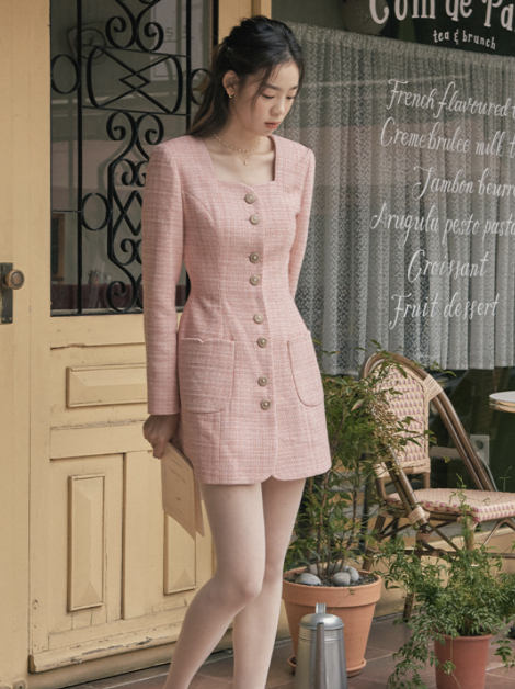 연말 모임 원피스 브랜드 제품 종류 순위 추천 세 번째! 빈티지한 디자인과 페미닌한 무드로 사랑받는 플로움 Heartweed Dress를 살펴보자. 이 제품은 하트를 모티브로 한 네크라인과 포켓 라인이 돋보이는 트위드 원피스다. 자칫 올드해 보일 수 있는 트위드 소재를 감각적으로 사용했고, 진주 장식이 들어간 단추를 사용해 디자인에 포인트를 더해 전체적인 퀄리티를 높였다.