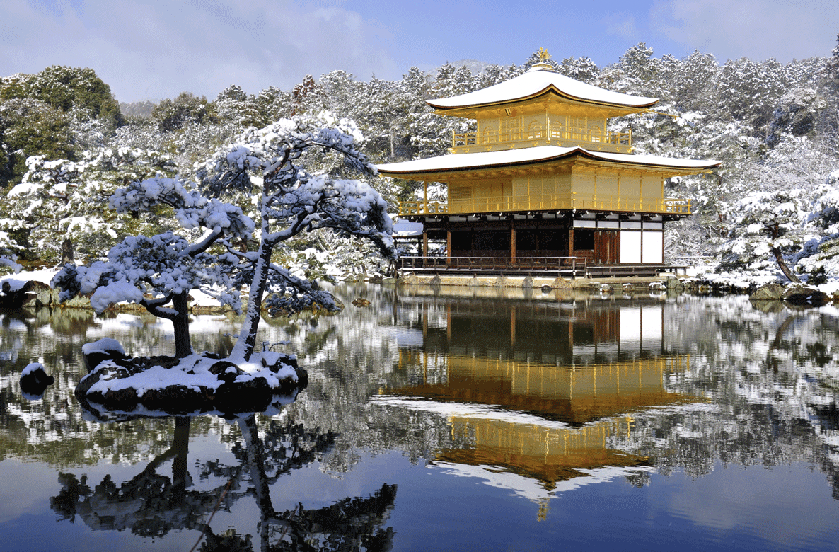 로쿠온지 또는 녹원사라고도 불리는 금각사는 쇼군 아시카가 요시미츠(1358 ~ 1409)의 개인 별장으로 사용할 목적으로 1397년에 세워졌어요. 3층으로 이루어져 높이가 12.8m인 금각사의 누각은 2층과 3층 모두 옻칠을 하고 금박을 입혀 독특한 모습을 자랑하지요.