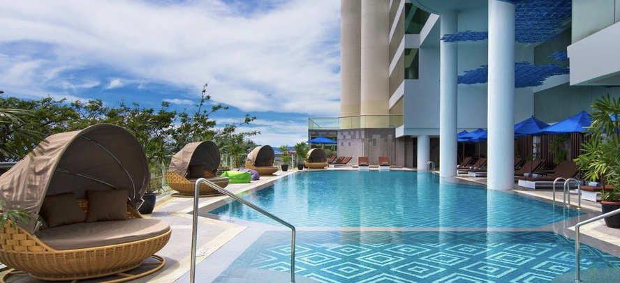 이 호텔에서는 무선 인터넷, 세탁 등의 서비스를 운영하고 있습니다. 뿐만 아니라, 인피니티풀, 피트니스 센터, 연회장, 회의실 등의 부대시설이 마련되어 있습니다. 각 객실은 바다 또는 도시 전망으로 구성되어 있으며, 객실 내에는 에어컨, TV, 냉장고, 욕조, 목욕 용품 등이 잘 갖춰져 있습니다. 호텔 내에는 해산물 요리를 맛볼 수 있는 빅 피시, 일본 요리를 선보이는 테판 테이블, 현지 음식을 제공하는 키친@8 등의 레스토랑이 있습니다. 칵테일 등의 음료를 즐길 수 있는 루프탑 바와 라운지 바에서는 휴식을 취하기 좋습니다.