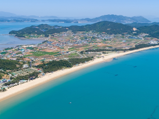 완도 가볼만한곳 베스트 10 일곱 번째! 신지명사십리 해수욕장은 해수에 포함되어 있는 미네랄 등 기능성 성분이 전국에서 제일 풍부한 남해안 최고의 해수욕장으로 규모뿐만 아니라 아름다움도 무척 빼어난 곳이다.