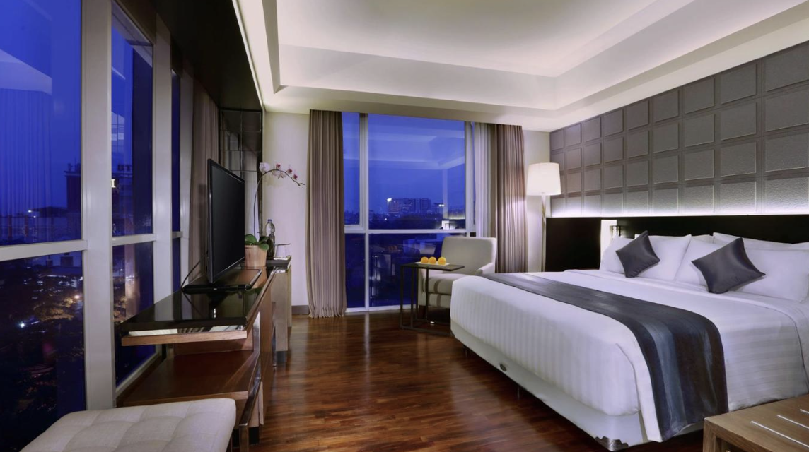 내부에는 수영장이 완비된 피트니스센터가 있습니다. 가족 여행객들을 고려하여 배치된 객실이 준비되어 있습니다. 또한 여러 규모의 인원을 수용할 수 있는 시설과 서비스를 제공하며, 키즈 클럽, 아이돌봄 서비스도 이용 가능합니다. 최근 리노베이션을 마친 이 호텔에는 186개의 편안하고 아늑한 객실이 있습니다. 특히 가족 여행객들을 고려하여 준비된 여러 형태의 객실이 있습니다. 매일 아침 주변 지역 관광을 시작하기 전 Purnawarman Restaurant, Fresco Restaurant에서 맛있는 조식을 맛보실 수 있습니다. 저녁에 여유롭게 술 한잔과 함께 휴식을 취하실 수 있는 아늑한 라운지 바가 있습니다. 그 밖에도 인근에는 수많은 레스토랑과 분위기 좋은 카페가 즐비해 있습니다.