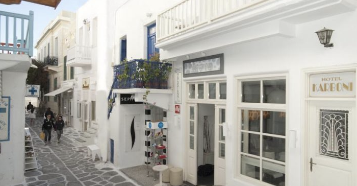 그리스 여행 미코노스 호텔 빌라 숙소 추천 베스트 네 번째! 미코노스에 자리한 이 카르보니 호텔은 지역의 인기 관광지와 가까운 거리에 있습니다. 무료 와이파이(Wi-Fi), 공항 셔틀 및 룸서비스도 완비되어 있습니다. 호텔 내 객실에는 냉장고 등을 포함하여 편안한 숙박에 필요한 모든 비품과 시설이 갖춰져 있습니다. 호텔에서 도보로 10분만 걸어가시면 미코노스 풍차에 도착하실 수 있습니다. 그 밖에도 숙소에서 아기오스로아니스 및 프사로우까지 자동차로 금방 가실 수 있습니다.