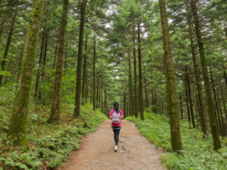 평창 가볼만한곳 베스트 10 아홉 번째! 국민의 숲 트레킹 코스는 인간의 생체리듬에 가장 좋다는 해발 약 700m 대관령 자락 (구)대관령휴게소 부근에 조성된 트레킹 코스이다. 산허리를 감싸는 흙길을 따라서 걷다보면 전나무와 주목, 독일가문비나무, 일본잎갈나무, 잣나무 그리고 자작나무숲이 나타나고 곳곳에 야생화도 가득 피어나 자연과 하나됨을 느낄 수 있다.