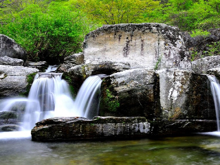 청송 가볼만한곳 베스트 10 네 번째! 청송군 안덕면 고와리 계곡에 위치해 있는 백석탄은 어떻게 보면 그곳에 어울리지기 않는 것 같은 정교한 예술조각의 탁월함을 갖추고 있다. 마치 옥 같은 여울속에 알프스의 흰 산맥의 일부를 잘라서 가져다 놓은 것만 같은 눈빛 연봉은 방호정의 맑은 물에서 목욕을 하였다는 선녀의 옷자락 같이도 보인다.