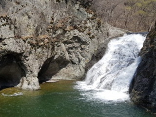 청송 가볼만한곳 베스트 10 여덟 번째! 용연폭포는 2단 폭포로 구성되고, 주왕산의 폭포 중에 가장 크고 웅장한 규모를 자랑한다. 또한 두 줄기의 낙수 현상으로 인하여 쌍용추폭포라고도 불린다. 1단 폭포의 양쪽 단애면에서 각기 3개의 하식동을 관찰할 수 있다. 폭포가 형성되고 발달하면서 침식에 의하여 폭포 면이 차츰 뒤쪽으로 밀려나가게 되었다. 지금의 폭포 면에서 가장 먼 부위의 하식동이 가장 먼저 만들어졌으며 폭포가 차츰 후퇴를 하면서 두 번째와 세 번째 하식동이 만들어졌다.