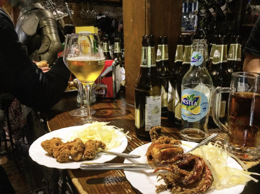 서유럽 여행 스페인 그라나다 맛집 추천 베스트 일곱 번째! 저렴하고 푸짐한 양의 음식을 맛볼 수 있는 타파스 식당입니다. 주류를 시키면 무료 타파스가 제공된다. 문어다리 튀김이 추천 메뉴입니다.