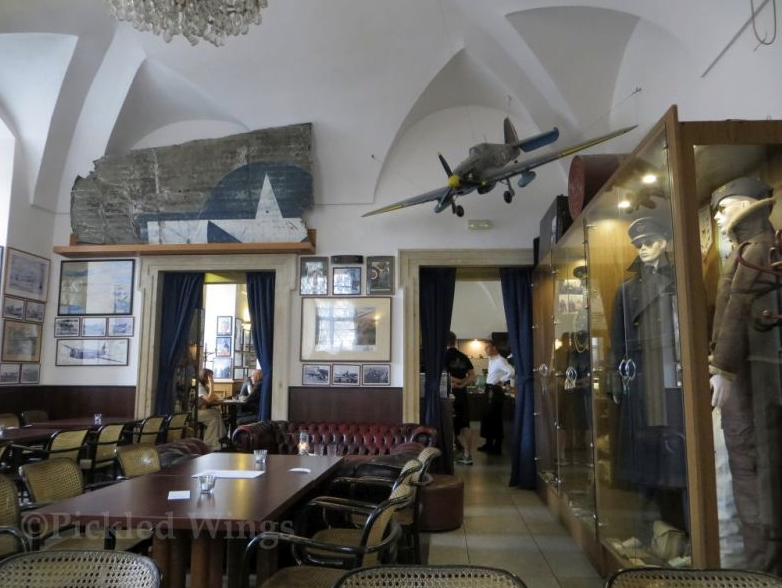 동유럽 여행 체코 브르노 맛집 추천 베스트 두 번째! 시대별 공군 사진과 포스터들, 공군 조립 키트 등 다양한 공군 소품으로 꾸며진 독특한 컨셉의 카페입니다. 1999년 처음 문을 열고, 총 130여 종에 달하는 방대한 럼을 가지고 있다는 것 또한 유명한 이유입니다.