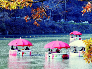 함안 가볼만한곳 베스트 10 두 번째! 크고 작은 산봉우리들이 저수지를 중심으로 하여 협곡을 이루고 있는 입곡군립공원은 빼어난 자연풍광과 형형색색의 바위, 기암절벽이 있는 그대로 보존되어 있어서 신비로움을 더한다. 저수지를 가로질러가는 출렁다리 산책로는 최고의 힐링코스이다. 사계절 아름답지만 특히 가을날 붉은색으로 물든 단풍은 한폭의 그림같다.