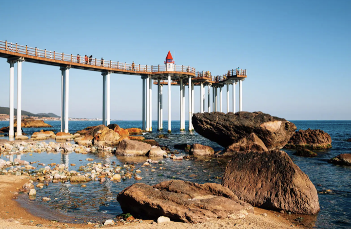 데크 입구에서 만나는 선바위는 벼락을 맞아 작아졌다고는 하지만 보는 이의 시선을 빼앗을 만하죠. 길을 따라 걸으면 제각각 이름이 어울리는 바위들을 마주하게 되죠. 비가 올 때 폭포가 되는 폭포 바위, 안중근 의사의 손바닥 바위, 귀여운 고릴라 바위, 흰 바위가 많은 힌디기 언덕을 지나면 칠선녀가 내려와 춤과 노래를 즐겼다는 하선대를 볼 수 있어요. 왜국으로 가 왕이 된 연오랑세오녀의 전설이 깃든 먹 바위도 놓치지 마세요.