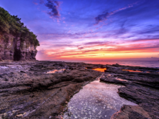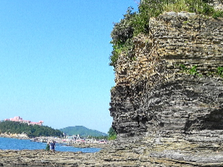 부안 가볼만한곳 베스트 10 다섯 번째! 채석강에서 해수욕장 건너 백사장을 따라서 북쪽으로 올라가면 붉은 암벽으로 이뤄진 적벽강이 있다. 변산반도의 거의 서쪽 끝부분에 위치한 해변으로, 거무스름한 세일층 위에 유문암이 덮쳐서 만들어진 페퍼라이트가 기묘한 형태를 연출하고 있는 바닷가 암벽이다.